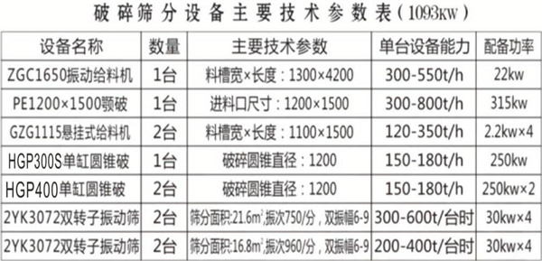 時產(chǎn)500-600噸硬巖骨料生產(chǎn)線方案平面布置圖(生產(chǎn)線總功率: 1370kW)